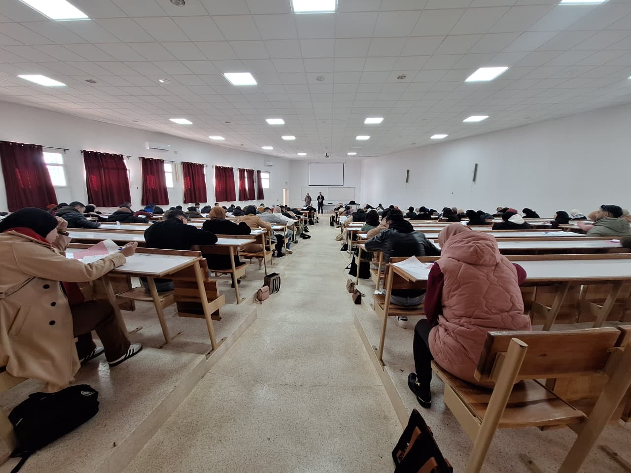 وقد قام كل من السيد العميد والسيد نائب العميد المكلف بالشؤون الأكاديمية والبيداغوجية والسيد الكاتب العام رفقة أعضاء لجنة تتبع الامتحانات، بجولة تفقدية شملت مختلف المدرجات والقاعات، للوقوف عن كثب على سير الاختبارات الكتابية، وخلال هذه الزيارة، تم التأكيد على صرامة التدابير المتخذة لضمان مبدأ تكافؤ الفرص، وتوفير الأجواء الملائمة للتركيز والتقييم.