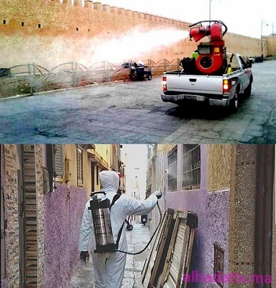 كما يتم استخدام المطهر من خلال أجهزة رش رذاذية متطورة تتنقل عبر السيارات الخاصة بتلك العملية أو بواسطة أشخاص متخصصين يتنقلون بها داخل الأزقة الضيقة بتازة العليا وبالتالي لا يكلف هدرا للمطهر ويغطى أكبر مساحة، وقد كلفت هذه العملية اعتمادات مالية مهمة من أجل سلامة الجميع، وعلى هذا الأساس أصبح من الضروري الالتزام بالحظر الصحي والمكوث بالمنزل من أجل سلامة الجميع حتى تعود الحياة لطبيعتها الأولى بعد محاصرة حاملي الوباء وعدم نشره من خلال الاختلاط.