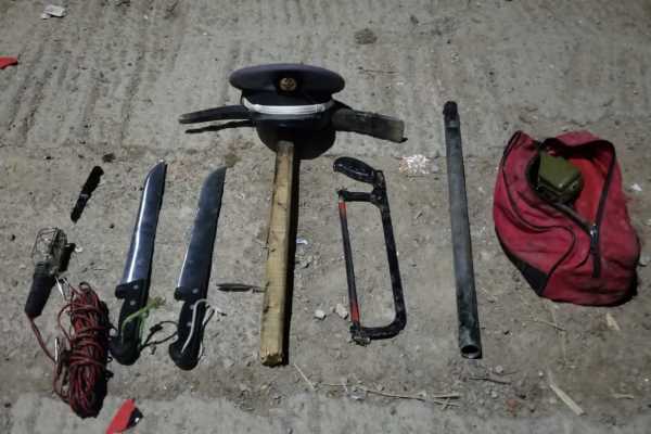 عملية التفتيش التي تم تنفيذها بالسيارة مكنت من العثور على قبعة لباس دركي وسلاح أبيض ومصباح وكابل كهربائي ، وقضيب حديدي ومنشار وحقيبة ظهر