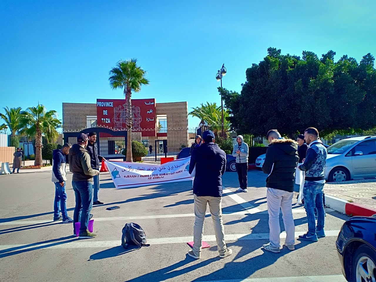 تنظيم وقفة احتجاجية أمام باشوية مدينة تازة يوم الأربعاء 07 يناير 2026 على الساعة الحادية عشرة صباحا،وهي وقفة مفتوحة على جميع الاحتمالات، تندرج ضمن برنامج نضالي تصعيدي سيتم الإعلان عن محطاته بشكل تدريجي، تبعا لطبيعة تعاطي السلطات مع الملف، ومدى جديتها في الاستجابة للمطالب العادلة والمشروعة لحملة الشهادات المعطلين.