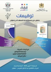 بتعاون مع جمعية قدماء المعهد الحر بتطوان، تنظم دار الشعر دورة جديدة من لقاء “توقيعات”، يوم الجمعة 17 أبريل الجاري، في فضاء المركب الثقافي عبد الخالق الطريس بتطوان، ابتداء من الساعة السادسة مساء.